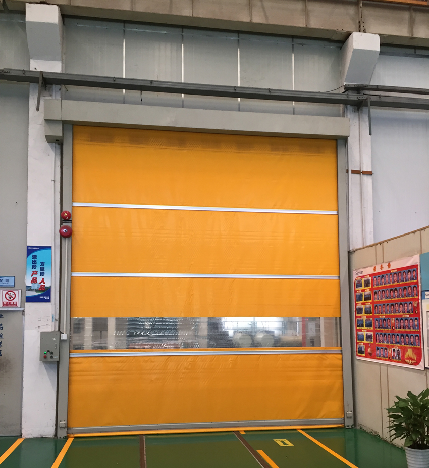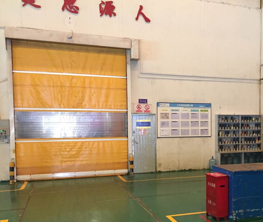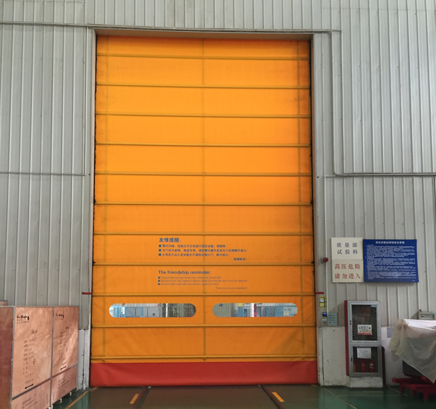 该门是设置在常压状态下建筑物内部通道出入口,用软帘布做成的快速自动卷帘门。门体使用有弹性而坚韧的专用高密度聚氯乙烯涂层织物软帘,实现了门体的高速开闭(比钢质卷帘门的速度要高约20倍),极大程度的缩短了通道出入口的开放时间,不仅提高了车间内部空调的效率还能将车间外部异物混入率控制在最小限度。大大提高工作效率。为实现安全、卫生、节能的工作环境,为提高产品质量作出贡献。