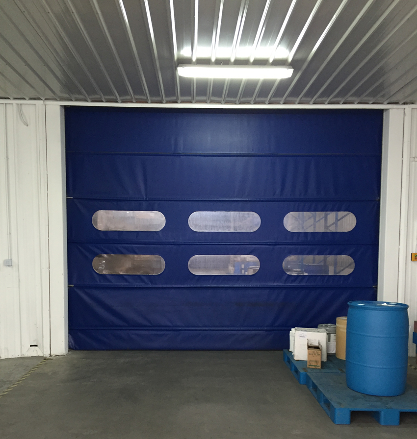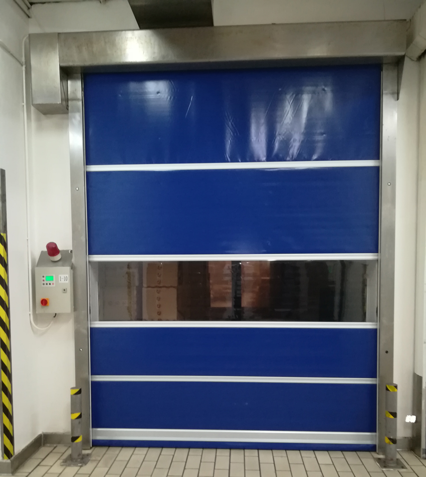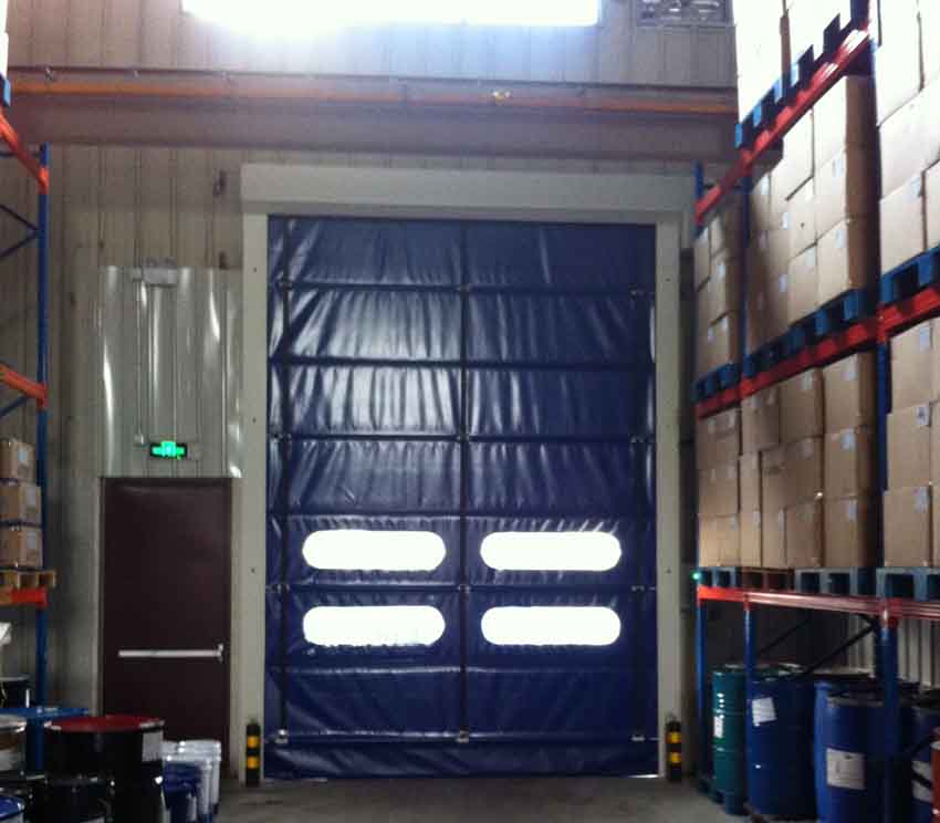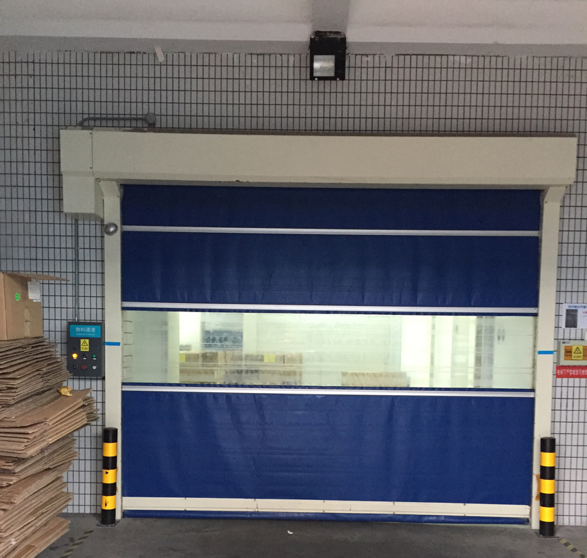 该门是设置在常压状态下建筑物内部通道出入口,用软帘布做成的快速自动卷帘门。门体使用有弹性而坚韧的专用高密度聚氯乙烯涂层织物软帘,实现了门体的高速开闭(比钢质卷帘门的速度要高约20倍),极大程度的缩短了通道出入口的开放时间,不仅提高了车间内部空调的效率还能将车间外部异物混入率控制在最小限度。大大提高工作效率。为实现安全、卫生、节能的工作环境,为提高产品质量作出贡献。