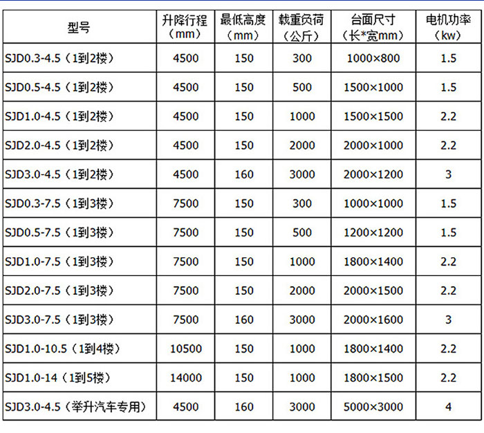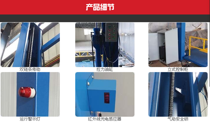导轨式升降平台提升机主要用各种工作层间货物上下运送;立体车库和地下车库二、三层高楼间、无法开挖地坑场所、顶层高度不能到达要求的场合等比较难解决的狭小空间,将竭尽全力为你打量身打造高效率的送货平台,产品液压系统设置防坠、上下层门互动连锁,各楼层和升降台工作台面均可设置操作按钮,实现多点控制。产品结构坚固,承载量大,升降平稳,安装维护简单方便,是经济实用的低楼层间替代电梯的理想货物输送设备。