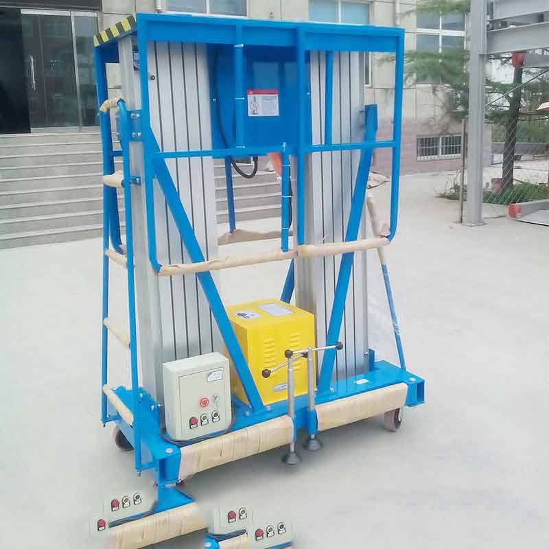 铝合金升降平台:整体采用铝型材制作而成 ,使升降台的偏转与摆动小。采用双桅柱式结构,载重量大,平台面积大,稳定性极好,运转灵活,推行方便。它轻盈的外观,能在小的空间内发挥好的举升能力。该升降机广泛用于厂房、宾馆、大厦、商场、车站、机场、体育场等。可用作电力线路、照明电器、高架管道等安装维护,高空清洁等单人工作的作业。