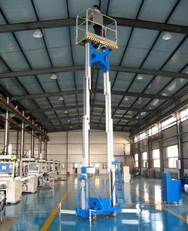 铝合金升降机采用高强度优质铝合金材料,具有造型美观、体积小、重量轻、运转灵活,推行方便。升降平稳、安全可靠等优点。它轻盈的外观,能在小的空间内发挥好的举升能力。广泛用于工厂、宾馆、餐厅、车站、影剧院、展览馆等场所,是保养机具、油漆装修、调换灯具、电器、清洁保养等用途的伴侣。