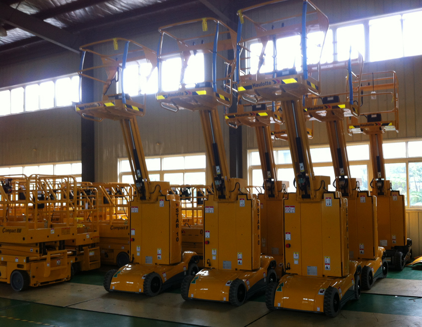 自行式高空作业平台,它具有自动行走的功能,能够在不同工作状态下,快速、慢速行走,只需一个人操作便可在空中连续完成上下、前进、后退、转向等所有动作。特别适合于机场候机楼、车站、码头、商场、体育场馆、小区物业、厂矿车间等较大范围的作业。