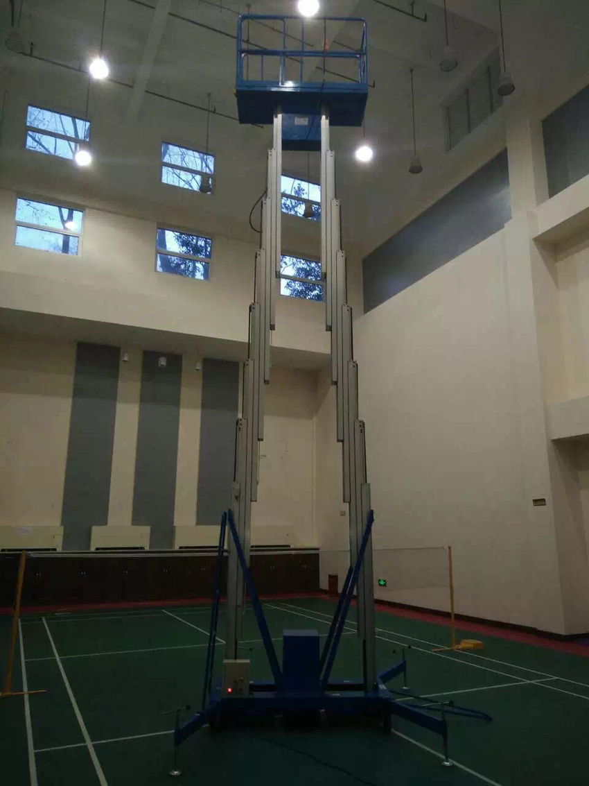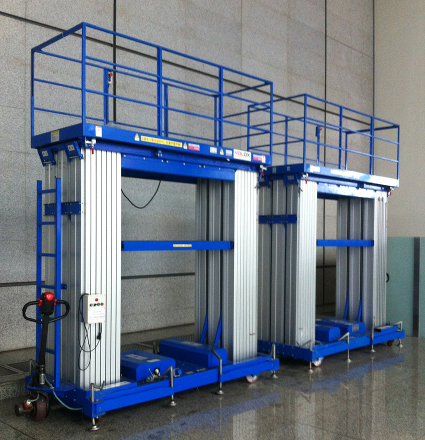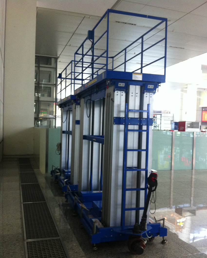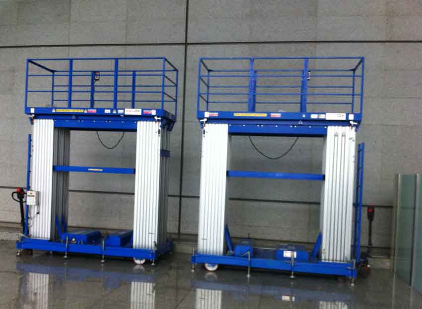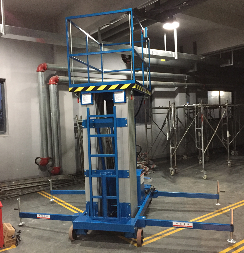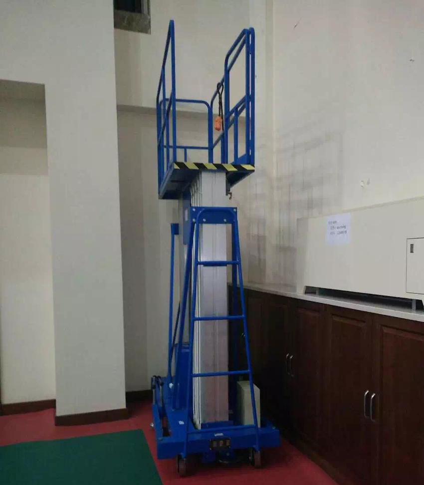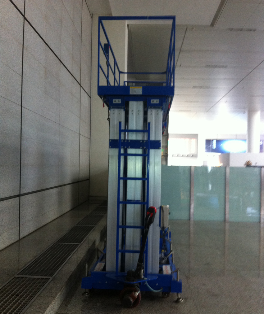 铝合金升降机采用铝合金材料,具有造型美观、体积小、重量轻、运转灵活,推行方便。升降平稳、安全可靠等优点。它轻盈的外观,能在小的空间内发挥好的举升能力。广泛用于工厂、宾馆、餐厅、车站、影剧院、展览馆等场所,是保养机具、油漆装修、调换灯具、电器、清洁保养等用途的伴侣。
